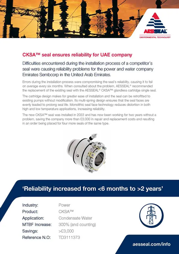 AESSEAL® have a wide range of sealing solutions suitable for use in the power generation industry.