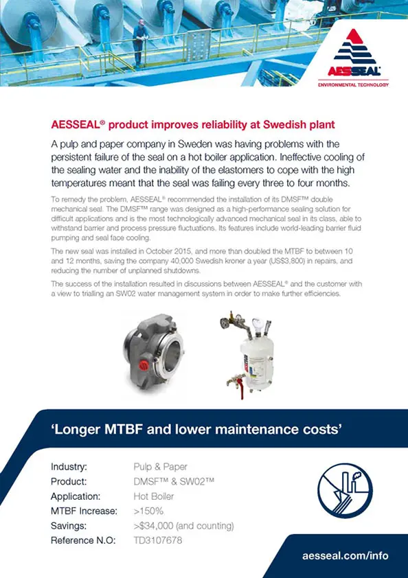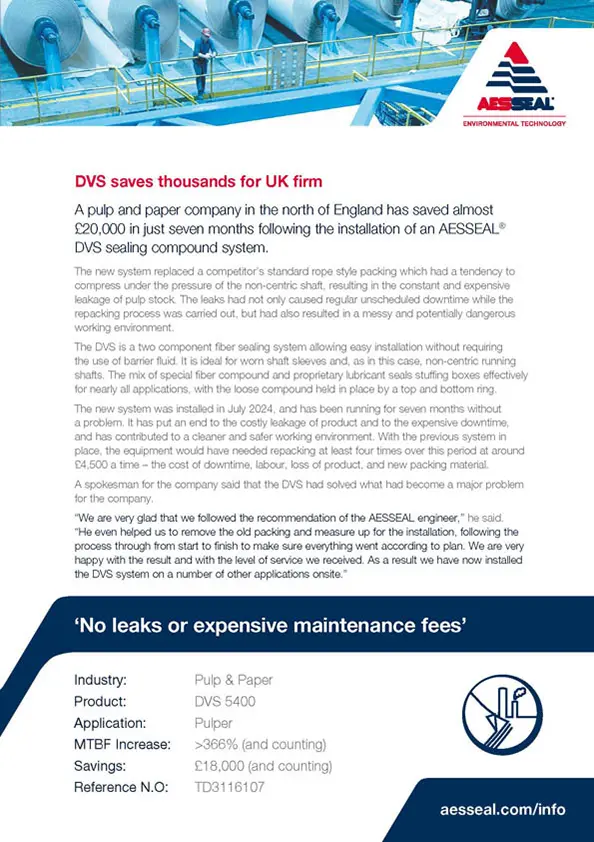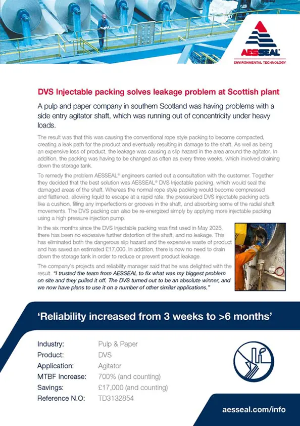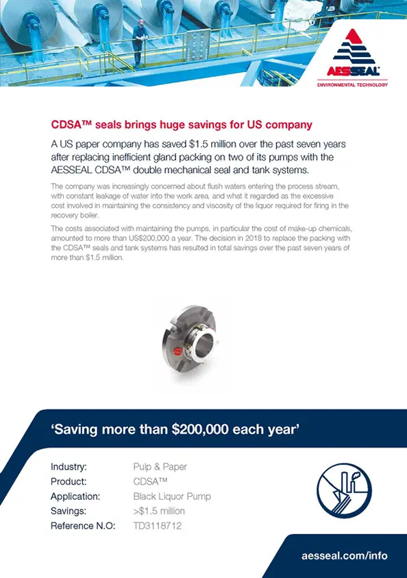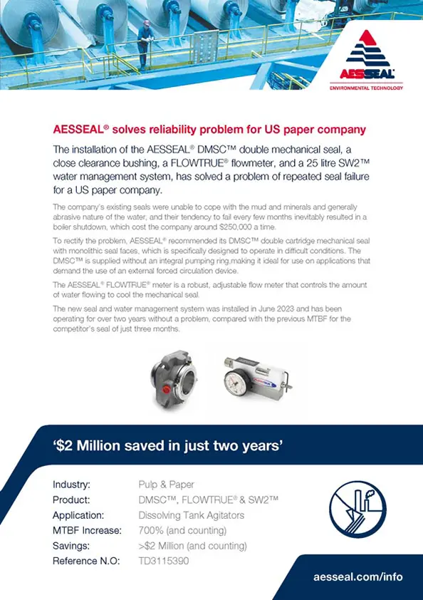 AESSEAL® have been helping the pulp and paper industry improve reliability, reduce water and energy consumption for many years.