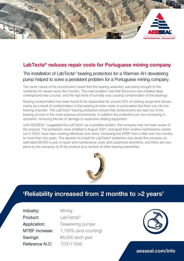 The installation of LabTecta bearing protectors for a Warman AH dewatering pump helped to solve a persistent problem for a Portuguese mining company.