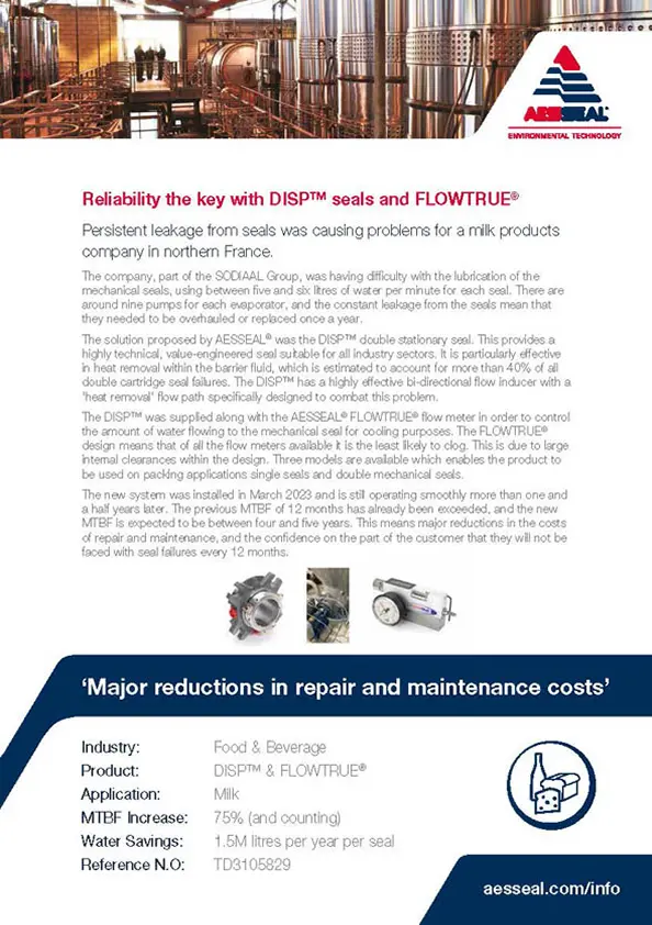 The AESSEAL® FLOWTRUE® is a robust and adjustable flow meter that controls the amount of water flowing to the mechanical seal for cooling purposes.