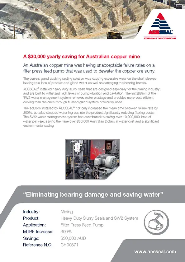 Upgrading gland packing to heavy duty slurry seals on a filter press feed pump leads to a $30,000 yearly saving.
