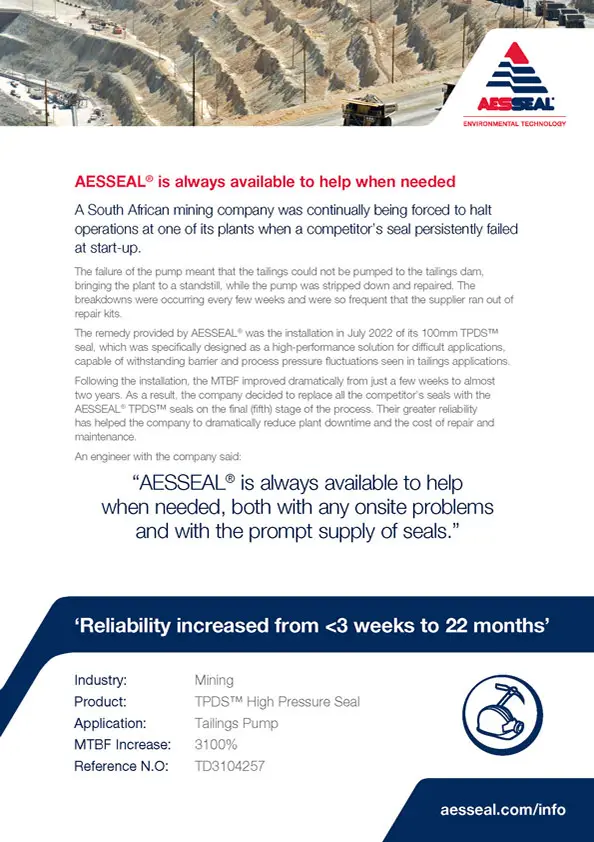 A South African mining company was continually being forced to halt operations at one of its plants when a competitor’s seal persistently failed at start-up.
