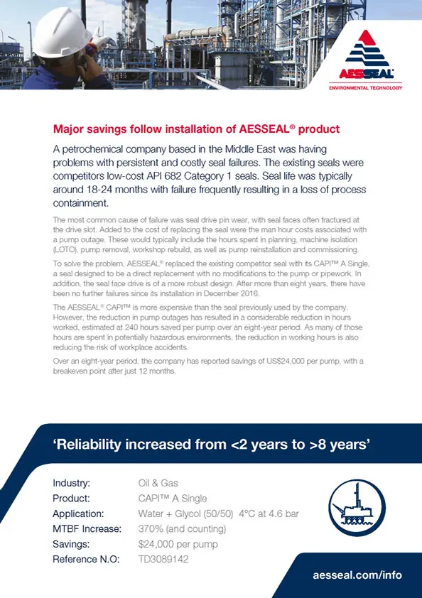 A petrochemical company based in the Middle East was having problems with persistent and costly seal failures.