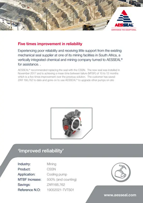 Experiencing poor reliability a mining facility in South Africa, a vertically integrated chemical and mining company turned to AESSEAL® for assistance.