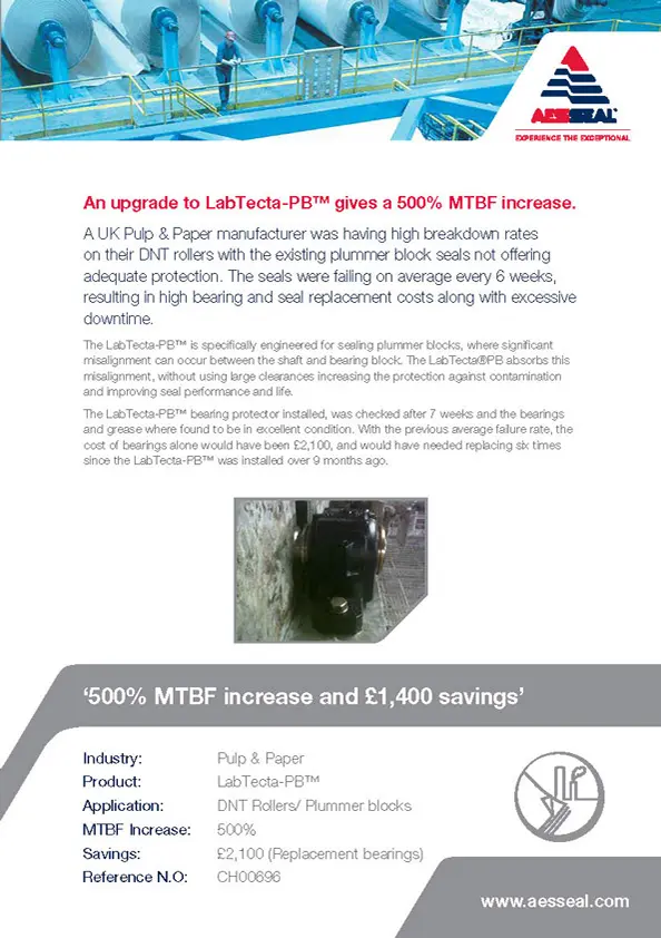 UK pulp and paper mill upgrade lip seals for bearing protection