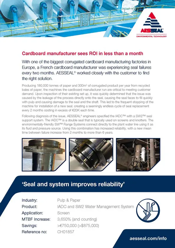 a French cardboard manufacturer was experiencing seal failures every two months. AESSEAL worked closely with the customer to find the right solution.