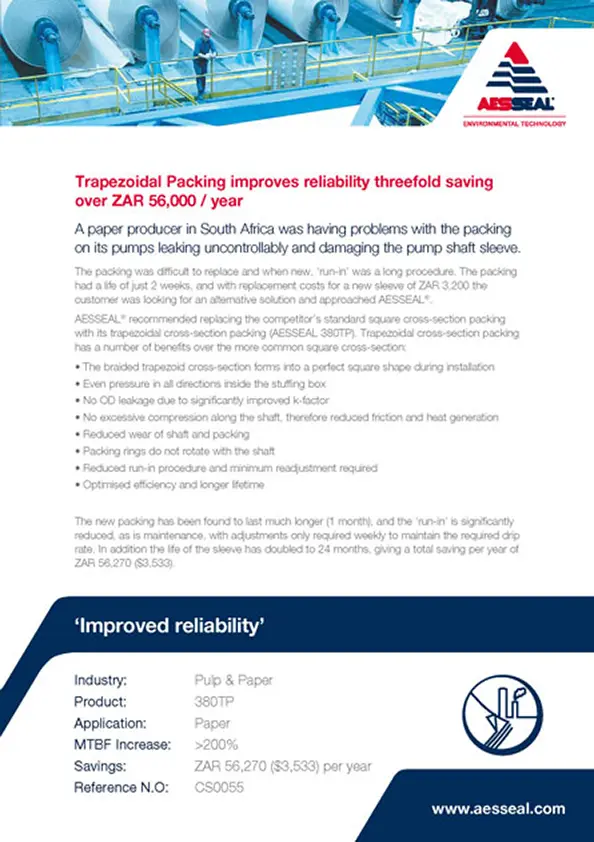 A paper producer in South Africa was having problems with packing on pumps leaking and damaging the pump shaft sleeve.