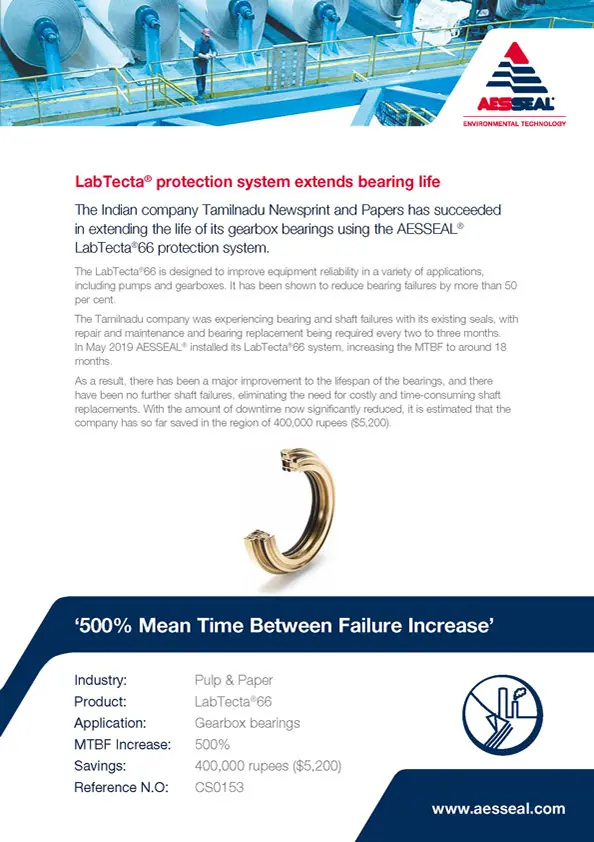Tamilnadu Newsprint and Papers extends life of its gearbox bearings using LabTecta 66 bearing isolation.