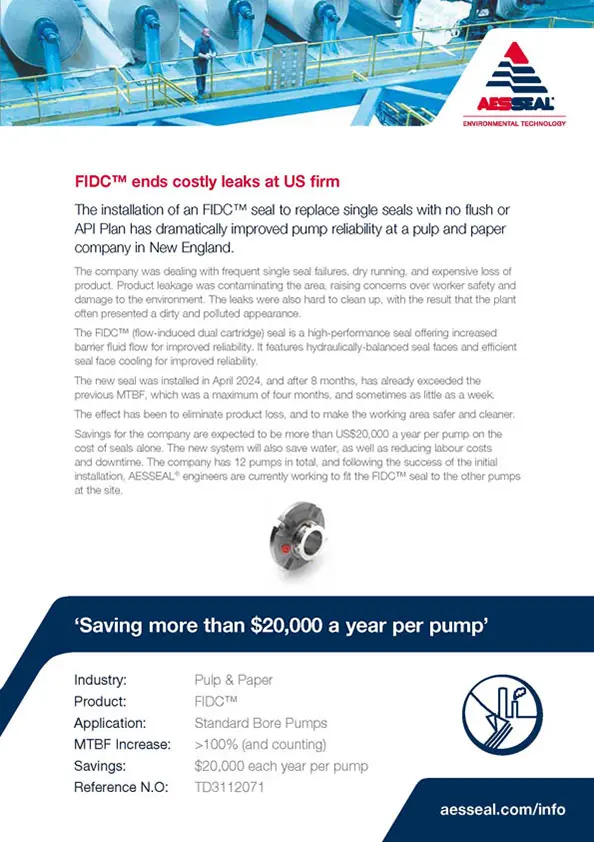 AESSEAL solves leakage problem at US paper mill