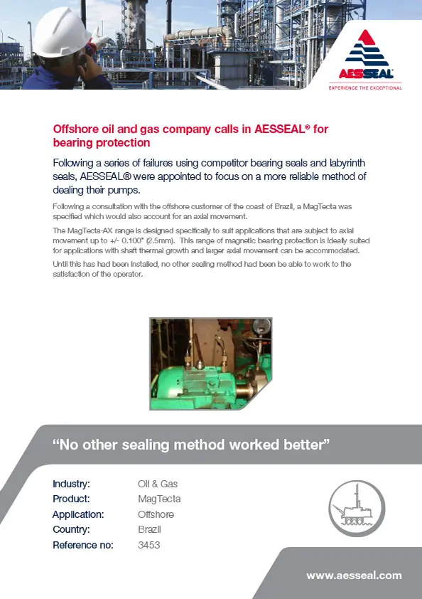 Offshore oil and gas company calls in AESSEAL for bearing protection