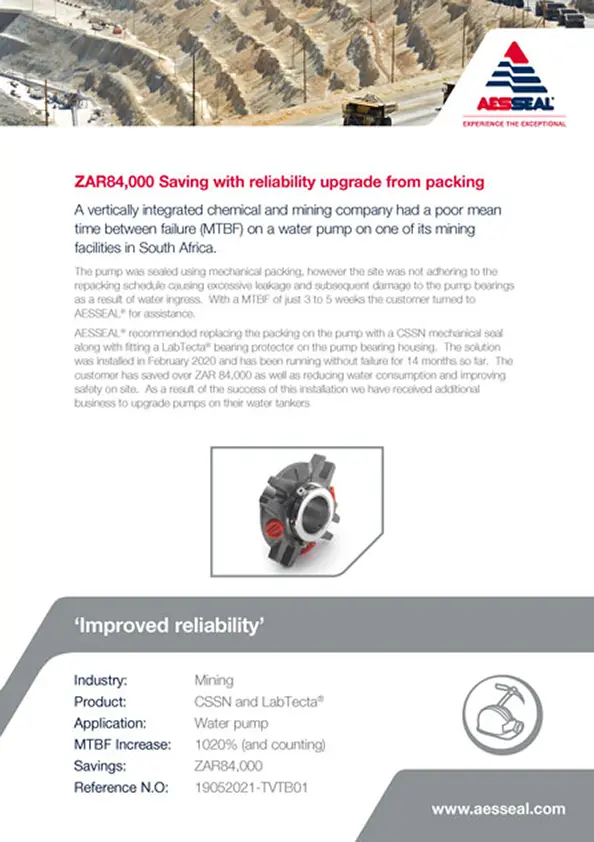A vertically integrated chemical and mining company had a poor mean time between failure (MTBF) on a water pump on one of its mining facilities in South Africa.