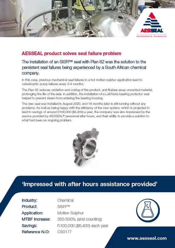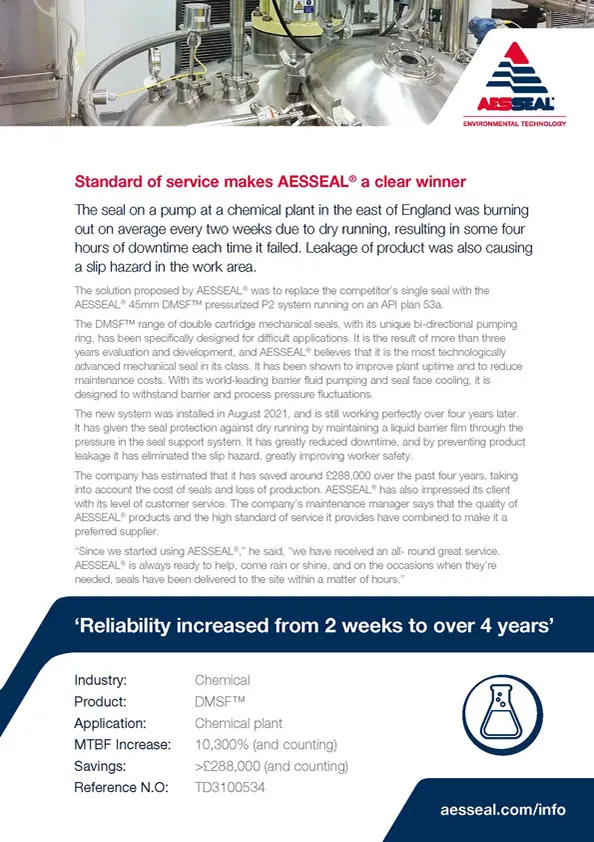 The seal on a pump at a chemical plant in the east of England was burning out on average every two weeks due to dry running, resulting in some four hours of downtime each time it failed.