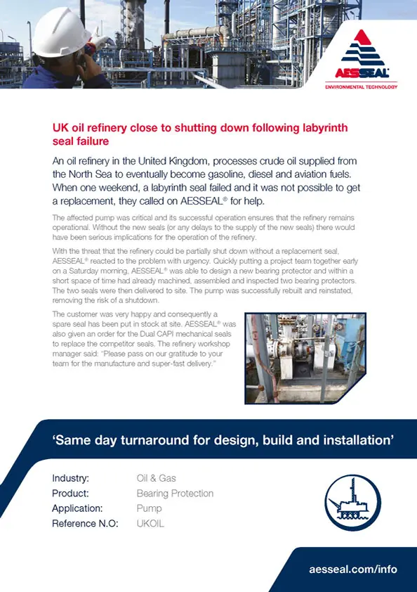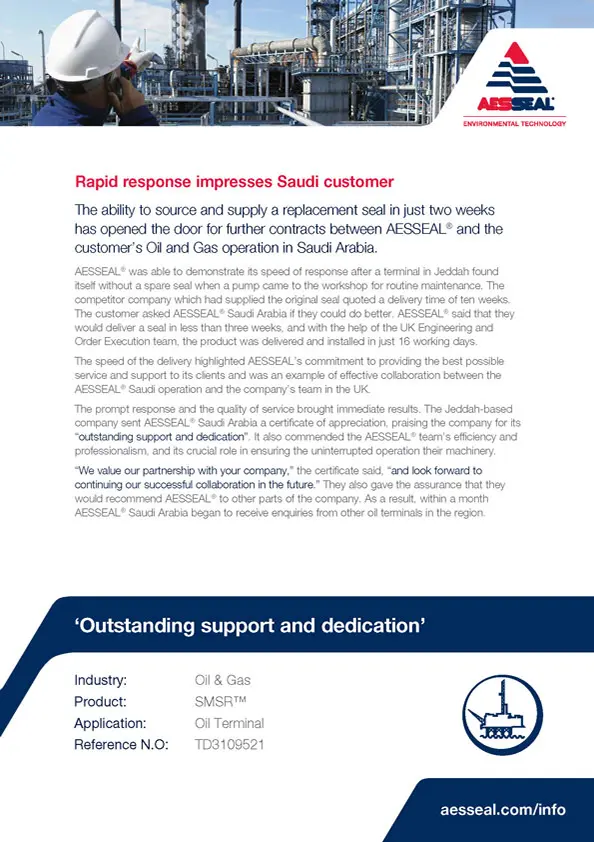 Sourced and supplied a replacement seal in just two weeks for customer’s Oil and Gas operation in Saudi Arabi