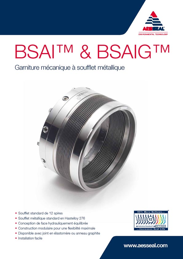 BSAI & BSAIG Le principal avantage d’une garniture à soufflet métallique est l’élimination de l’élastomère semi-dynamique glissant d’une garniture de type « Pusher » conventionnelle. Par conséquent, elles peuvent être utilisées là où l’attaque chimique sur cet élastomère pose problème.