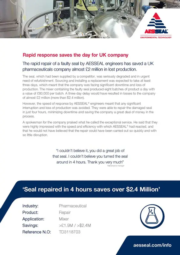 The case studies below showcase the very best of commitment to excellence at AESSEAL across our three core pillars: